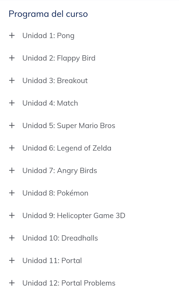 Entre los videojuegos que programarás a lo largo del curso, se encuentran: