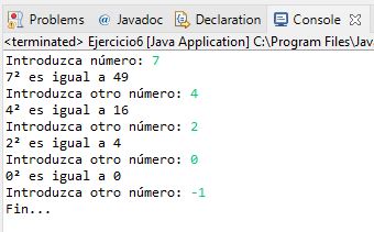 Y después con ese dato ingresado, calcularemos su cuadrado, y le seguiremos pidiendo un dato entero al usuario y calcular su cuadrado, hasta que este ingrese un numero negativo.